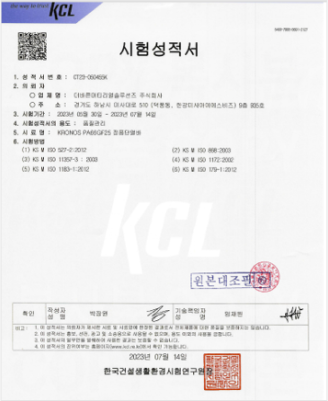 ISO, KS PA66GF25 공인기관 원료 시험- 1회 합격 제품 [크로노스 QC 관리기준]