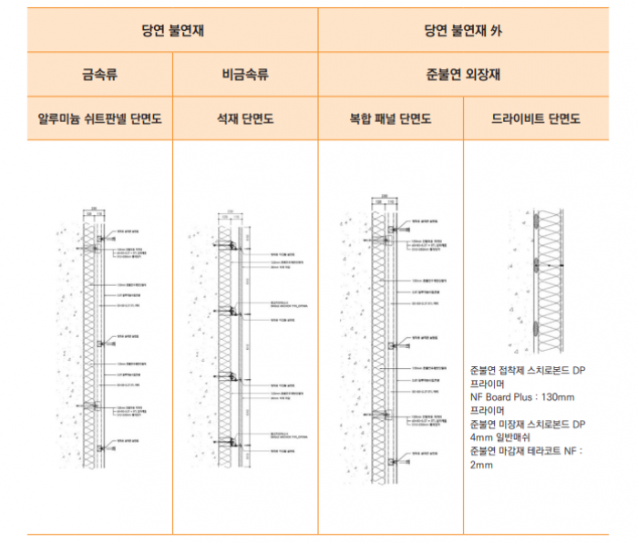 실형모형 화재 시험 성적서의 외부마감재 SPEC 적용합니다.